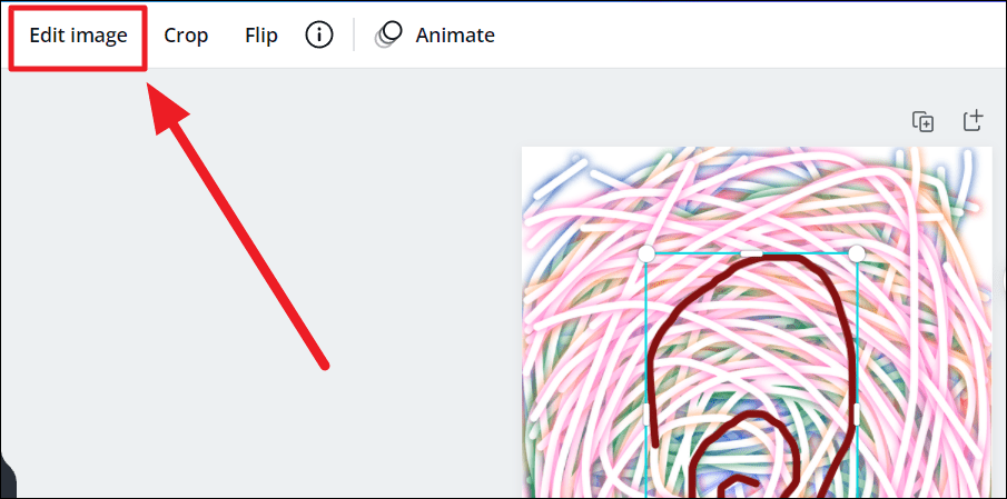 Once your drawing is complete, Canva would consider it as an image, and hence, all image editing options would open to your drawing as well. To edit your drawing, select your drawing first, and click the ‘Edit image’ option above the image.