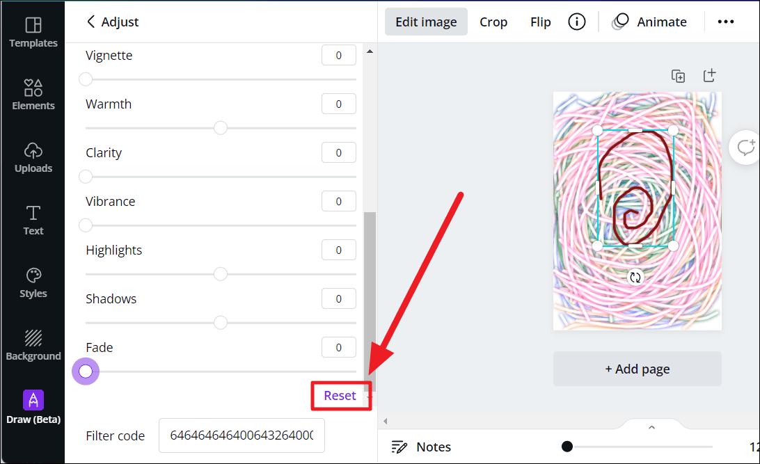If the adjustments messed up, you can always reset all the aspects by clicking the ‘Reset’ button at the end of the ‘Adjust’ list.
