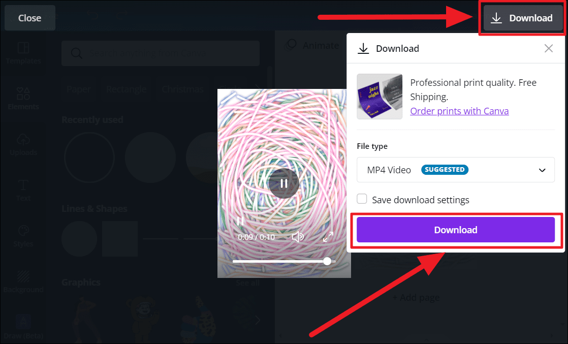 You will now see your drawing in motion. You can download the clip from this screen as well. Click the ‘Download’ button to the top right corner of the playing screen, select your file type (we recommend going with the suggested file type) in the drop-down menu, and hit the ‘Download’ button at the bottom of the menu.