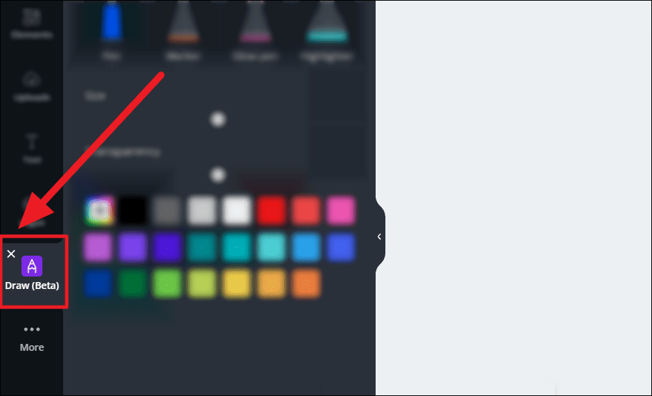 If you wish to remove the ‘Draw’ app from your Canva margin, simply hover your cursor over the app’s block and hit the tiny ‘X’ to the top left corner of the block.