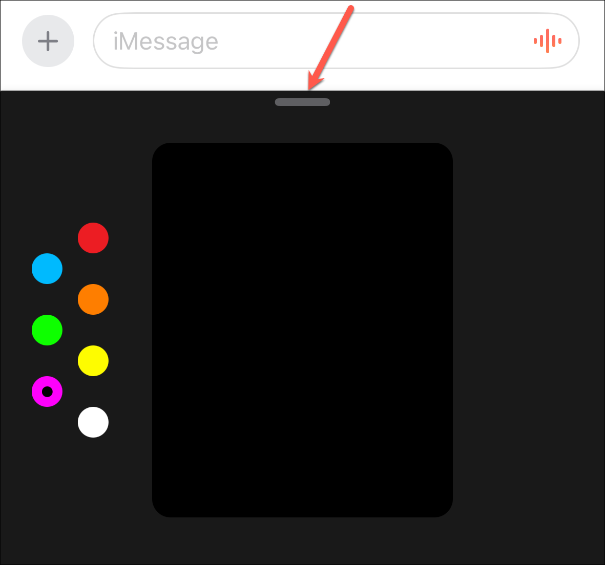 Step 4: A drawing canvas will appear at the bottom of your screen. You can swipe up to expand the canvas to full screen if you prefer more space to draw. Choose your preferred color by tapping on the colored dots.