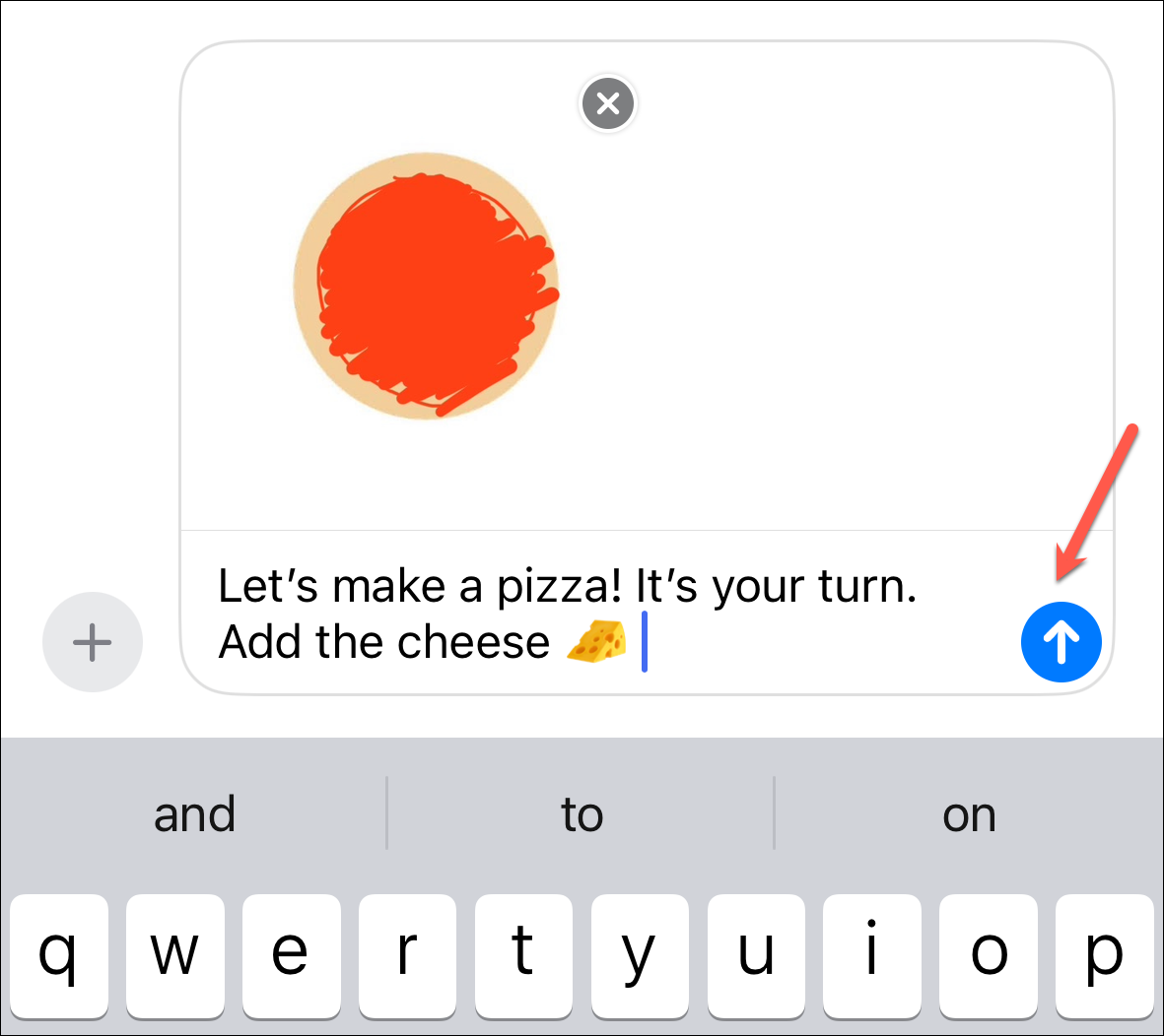 Step 8: Your friend can now save the image you sent and repeat the process to add their own toppings or designs. Typically, you alternate turns—one person adds sauce, the other adds cheese, and so on—creating a collaborative pizza drawing.