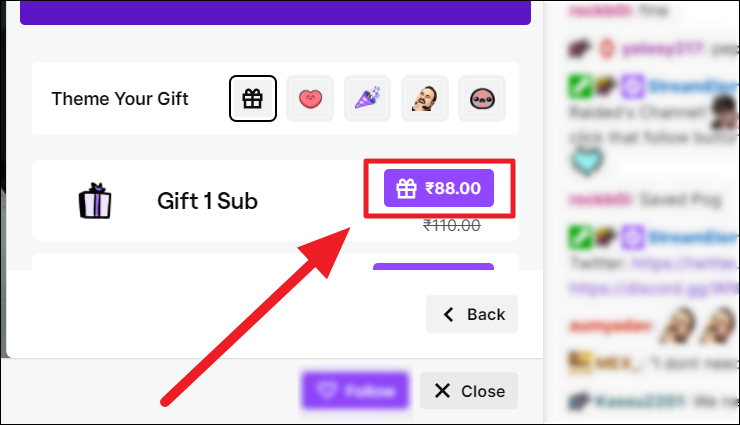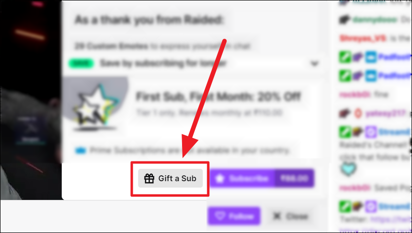 Now, click the ‘Gift a sub’ button to the left of the ‘Subscribe’ button.
