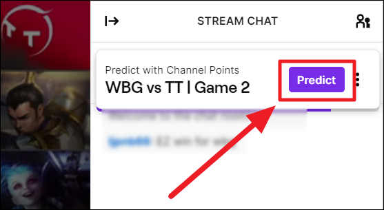 So, if you see a channel prediction and you have enough channel points to participate, go for it. Place your bet! To find a prediction, expand the stream chat (if you cannot see it). Click the ‘Predict’ button in purple at the top of the stream chat.