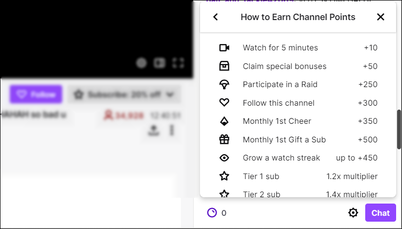 You will now see a list of ways you can earn channel points along with the value of each action.