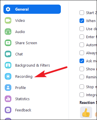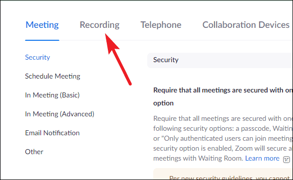 Then, go to ‘Recording’ from the navigation menu on the left.