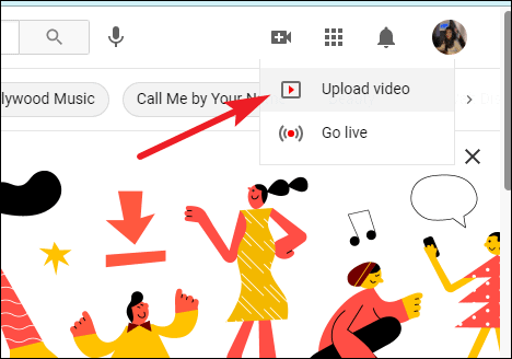 Go to youtube.com and click the ‘Create’ button towards the top-right of the screen.