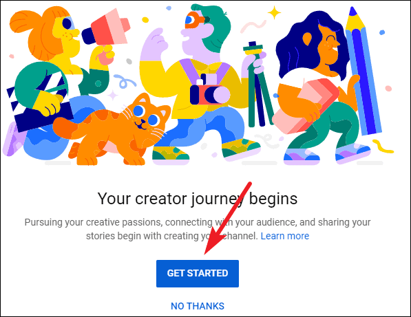 If you’re uploading for the first time, click the ‘Get Started’ button. Then follow the instructions on the screen to set up your channel.