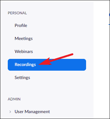 To view a Cloud Recording, go to zoom.us and log in to your account. Then, go to ‘Recordings’ from the navigation menu on the left.