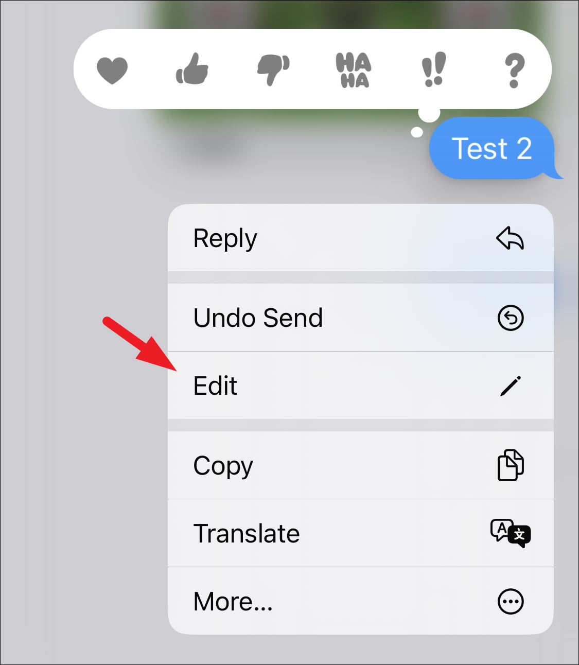 Next, locate the message in the conversation that you wish to edit, and then tap and hold on to the message bubble to reveal the context menu on your screen.