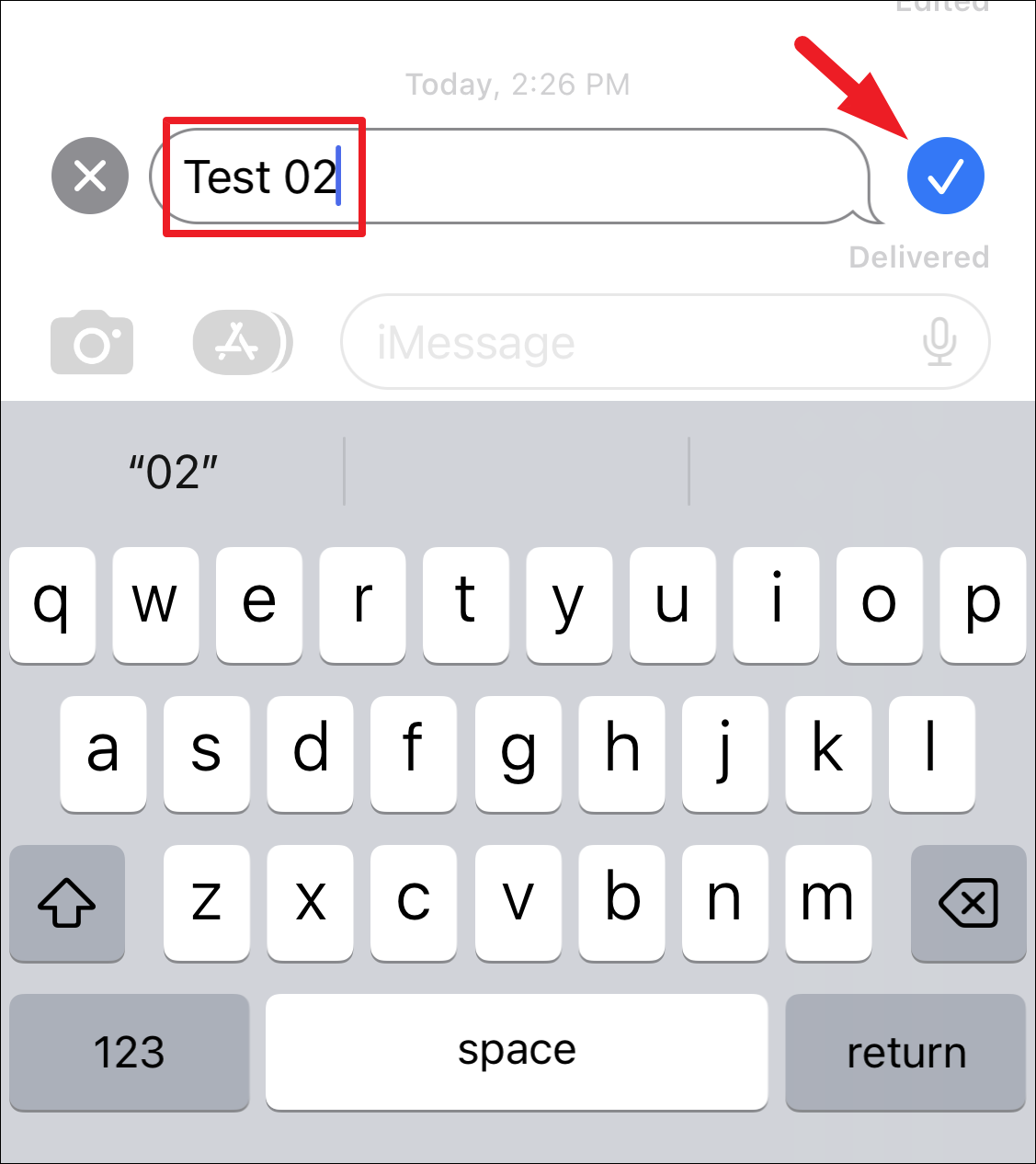 Your typed message will be available for editing on the overlay screen. Use the on-screen keyboard to make the desired changes and tap on the ‘tick’ icon button to save them, so the changes are reflected in the conversation universally, i.e., yours as well as on the recipient’s side.