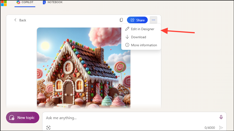 Thanks to a recent update, this Copilot AI has now gained the power of inline image editing. This means you can edit the generated images directly in the AI tool without needing to use an external editor. Let's see how this works.