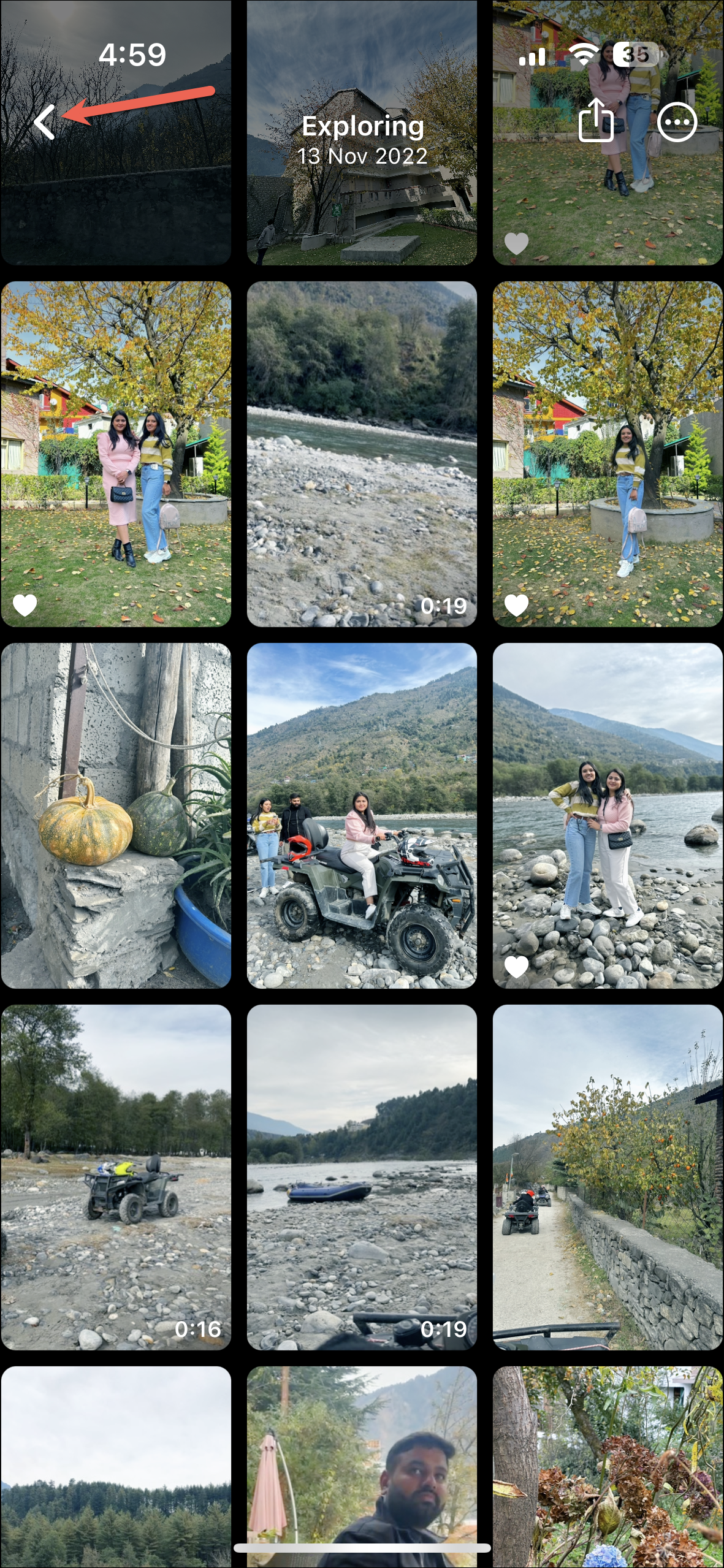 - Finally, tap the 'Back' icon to apply the changes. The photo/ video will appear at the desired position in the memory.