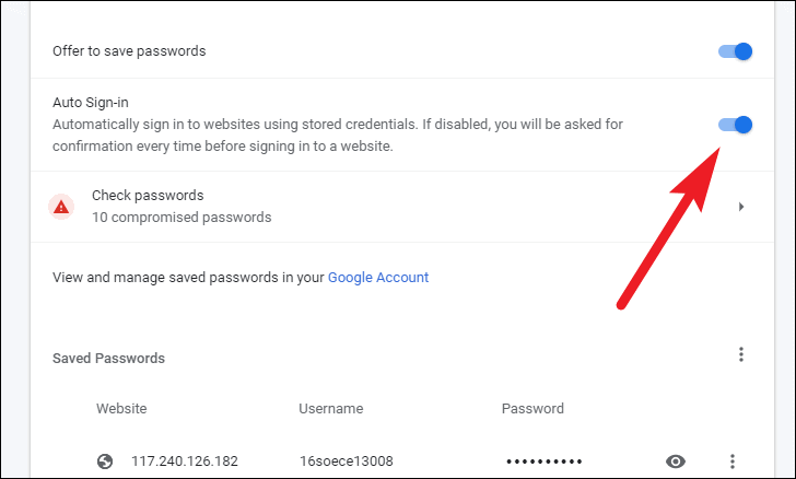 Step 2: Toggle the switch next to 'Auto Sign-in' to enable the feature.