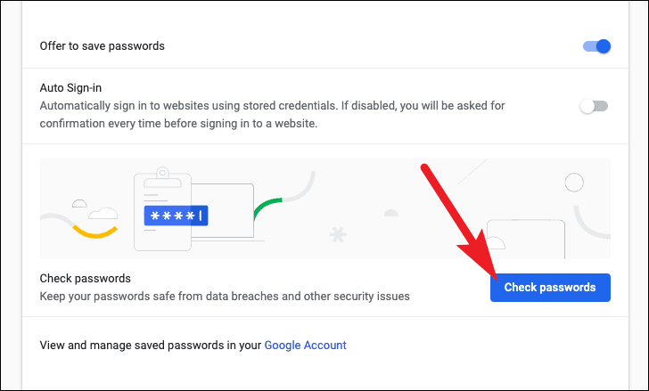 Step 2: Click on 'Check passwords' to initiate the security analysis.