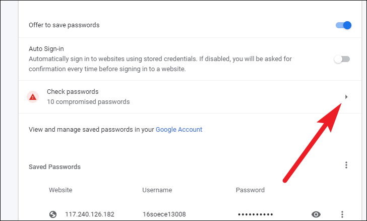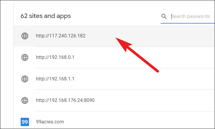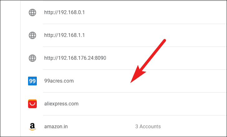 Step 2: From the list of saved passwords, locate the website for which you want to edit or update the password, and click on it.