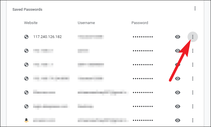 Step 4: Find the website whose password you want to edit, and click on the three vertical dots next to it.