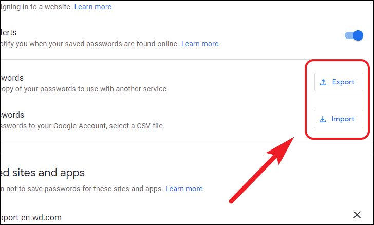 Note: The import and export options are currently available only on the Google Password Manager website.