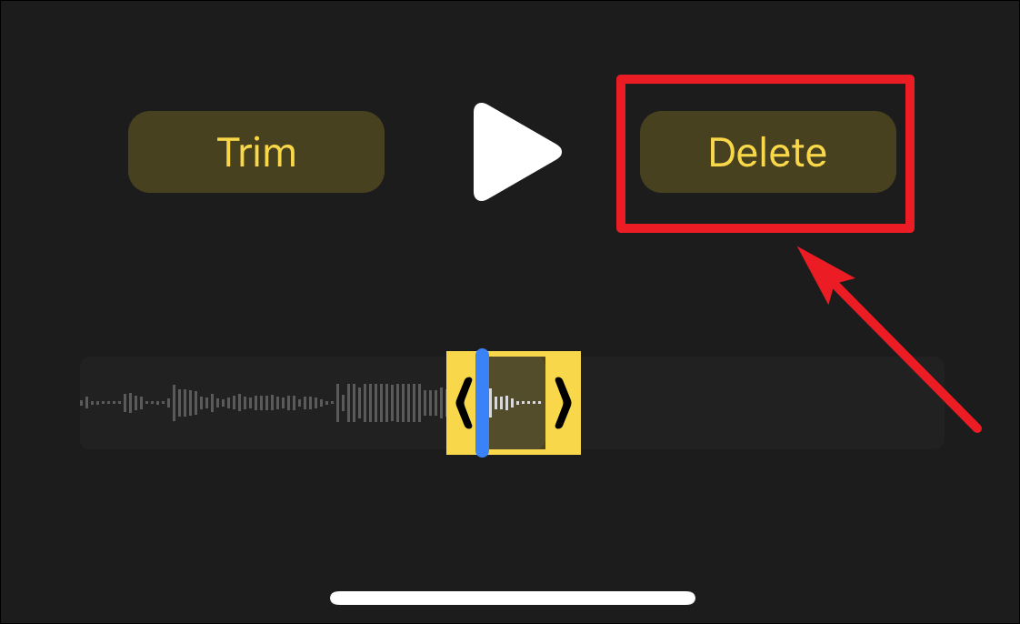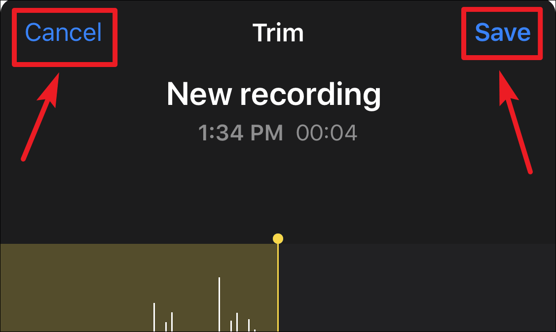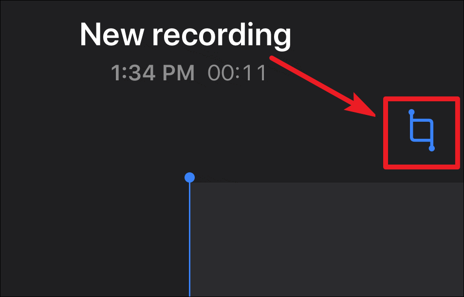 In the editing mode, tap the ‘Trim’ button (a square with extended lines and dots) on the upper right of the recording.