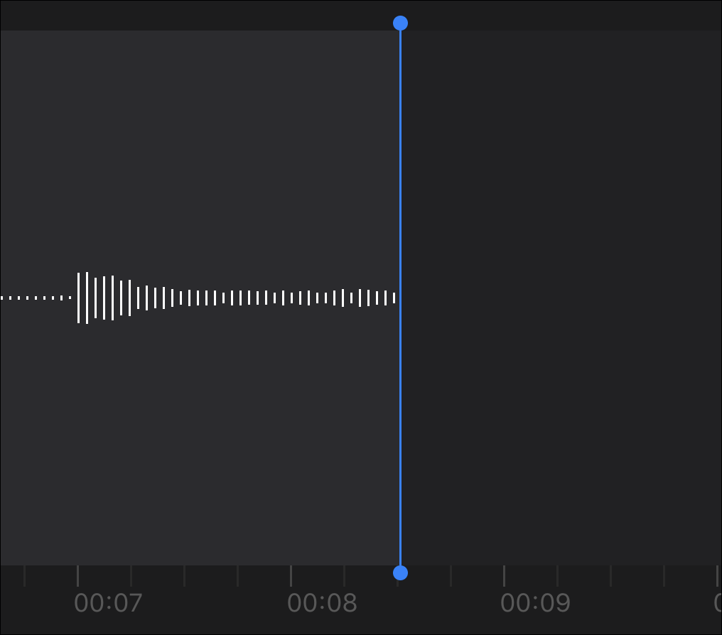 When you tap the ‘Edit Recording’ option, the editing screen will open. A blue playhead will indicate the current position on the waveform.