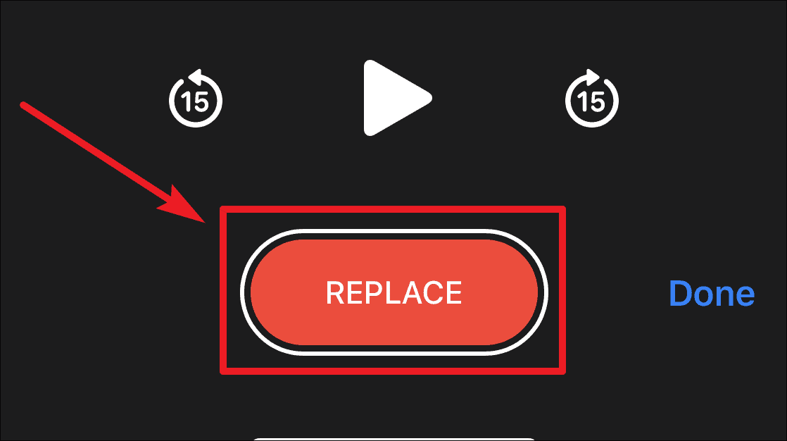 Once the playhead is at the correct position, tap on the ‘Replace’ button at the bottom of the screen and start recording. Tap on the ‘Pause’ icon to stop the replacement of the rest of the recording when you are finished. Tap ‘Done’ to save the changes.