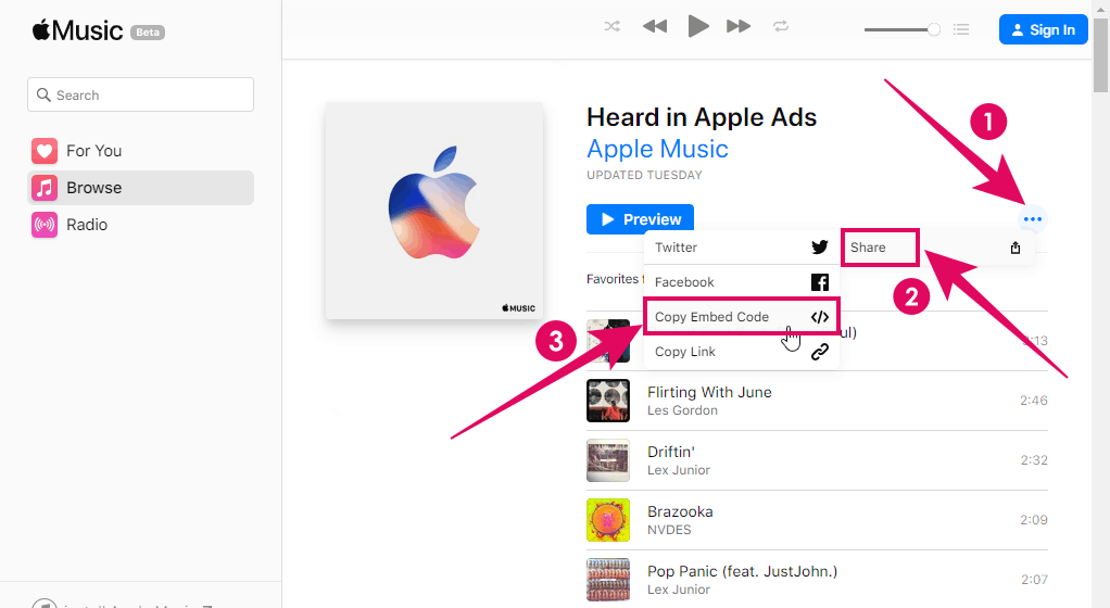 How to embed a song from Apple Music Web