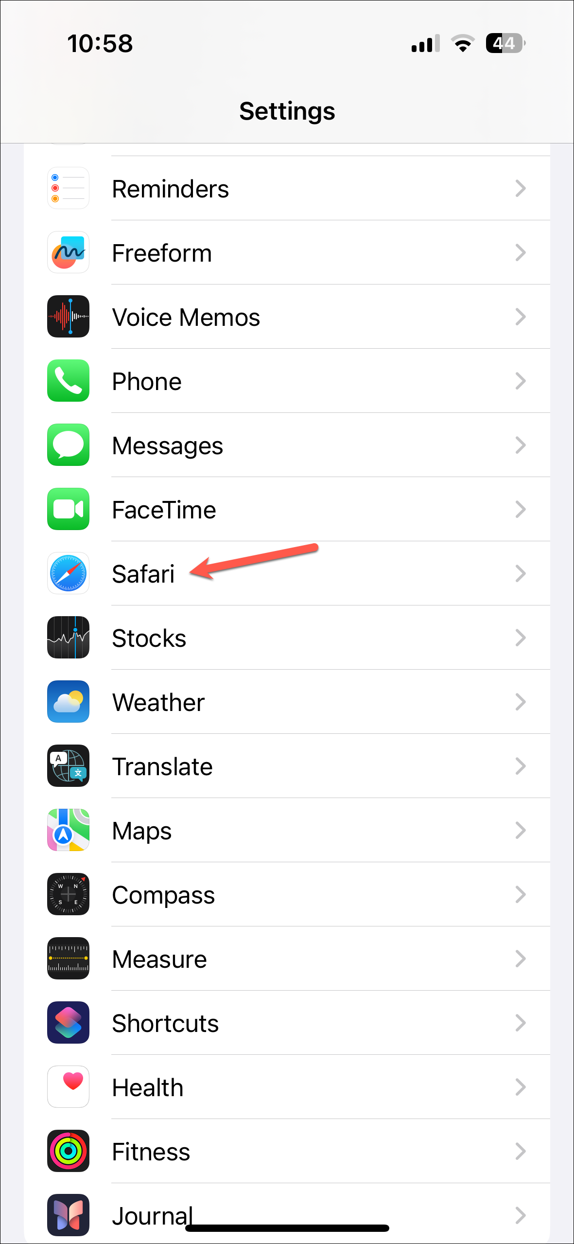 - Head to the 'Settings' app on your iPhone. Then, locate and tap on the 'Safari' option.