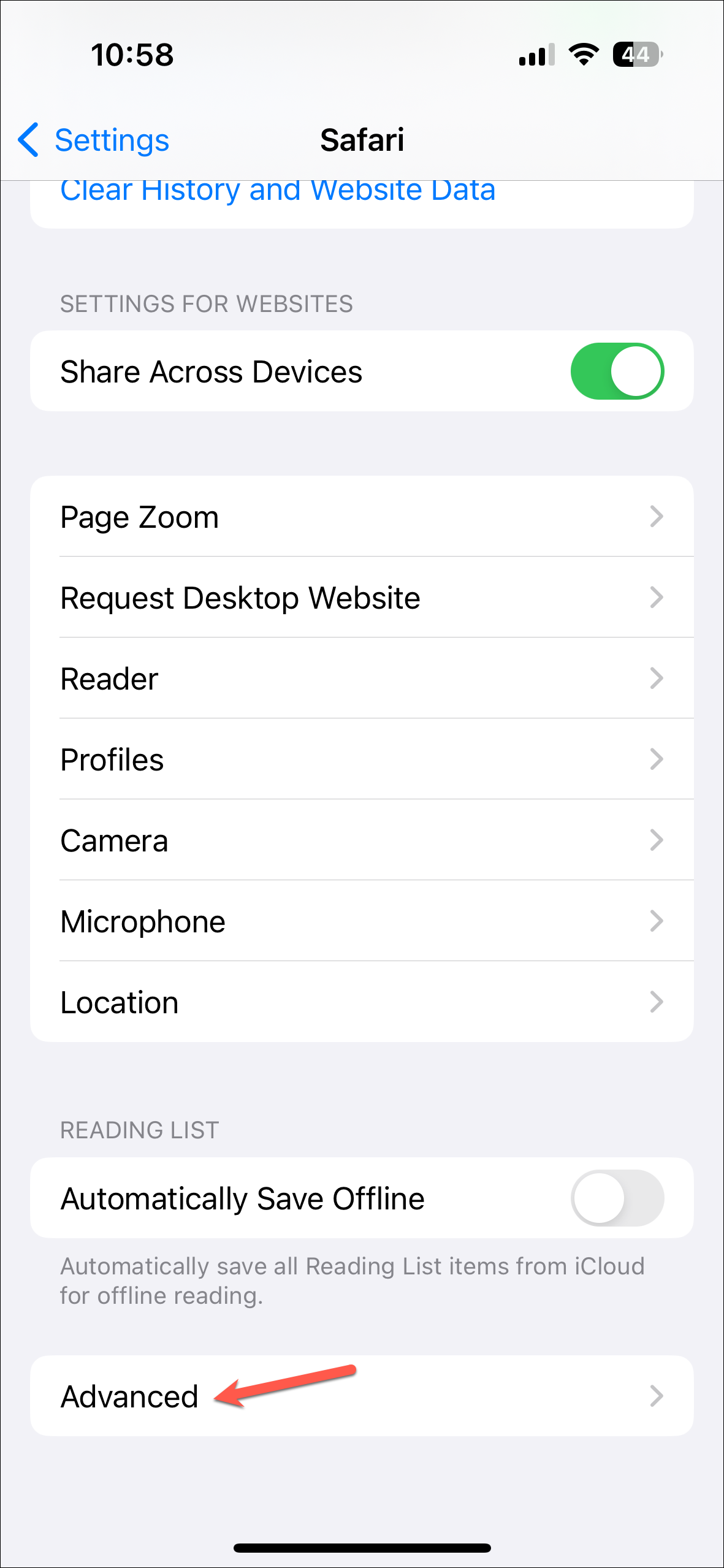 - Scroll to the bottom of the screen and tap on 'Advanced'.