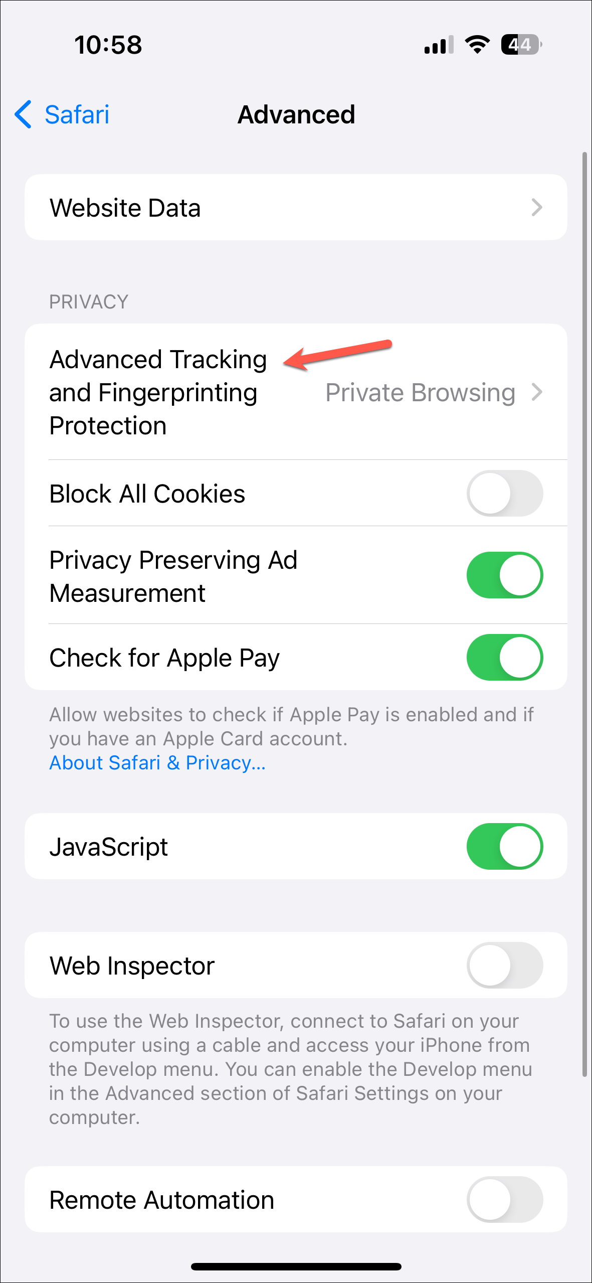 - Tap on 'Advanced Tracking and Fingerprint Protection'.