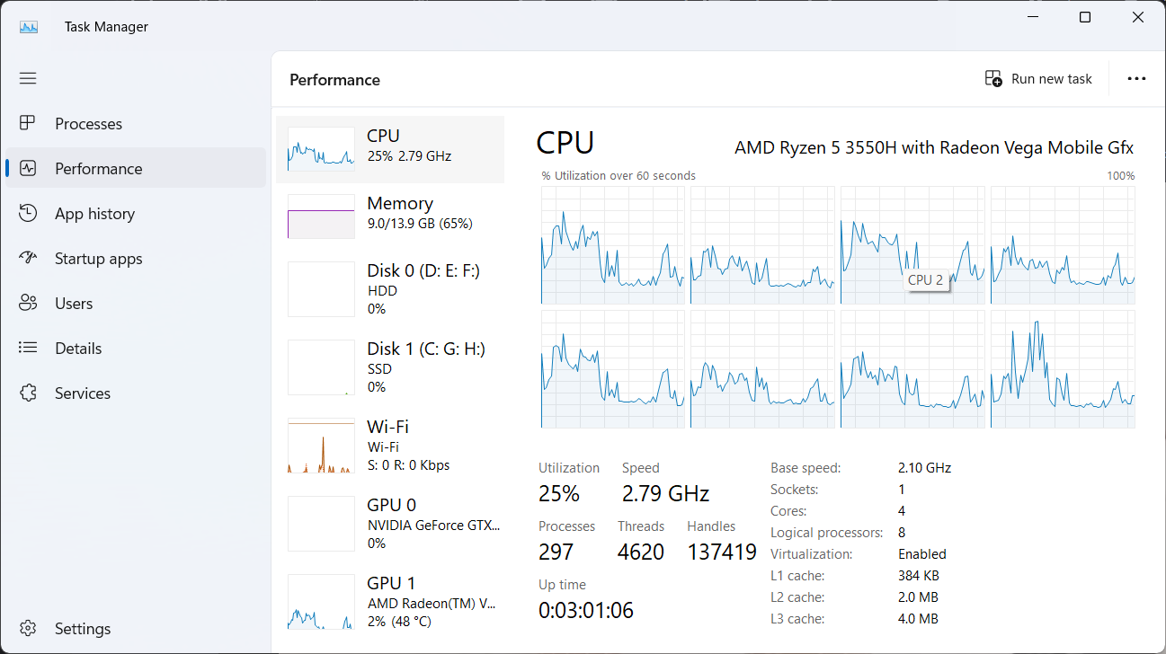 This will transform the graphical view within the Task Manager, providing smaller, individual graphs for each CPU core.