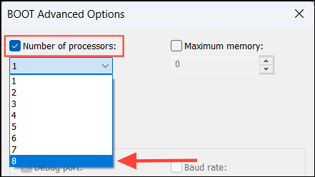- Check the box next to the 'Number of processors' and then select the desired number of processors from the drop-down menu. For maximum performance, it's recommended to use the maximum number of processors your CPU has.