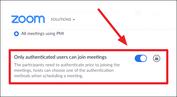 Step 2: Scroll through the settings until you find the option labeled "Only authenticated users can join meetings". Enable this setting by clicking the toggle switch next to it, ensuring it turns blue, indicating that it is active.