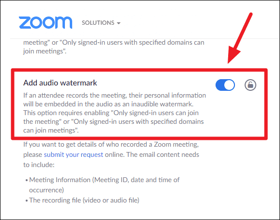 How to enable 'Add audio watermark' in Zoom recordings