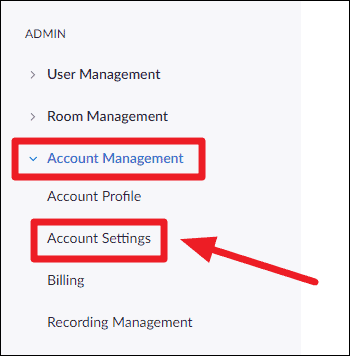 Step 1: Sign in to your Zoom admin account by visiting zoom.us/profile. Once logged in, navigate to the left-side panel under the 'Admin' section and expand 'Account Management'. Click on 'Account Settings' from the options provided.