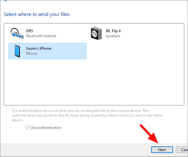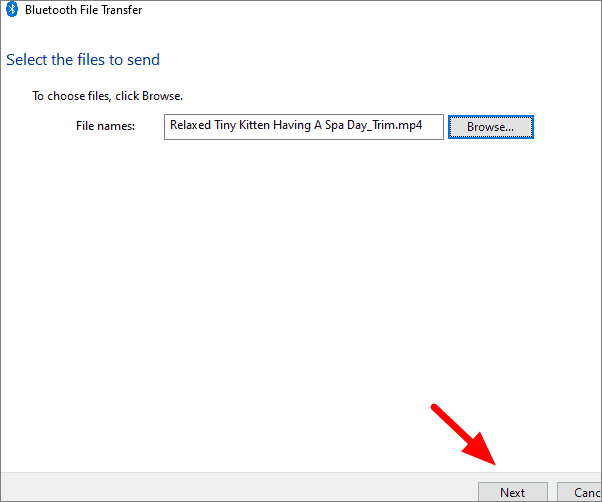 Browse your system and select the file you want to share. After you have selected the file, click on ‘Next’ at the bottom.