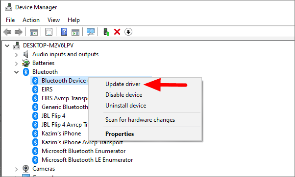 Search for Bluetooth, and from the list, right-click on the Bluetooth device you are facing issues with, and then click on ‘Update driver’ from the context menu.