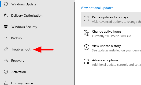 In Update & Security, click on the ‘Troubleshoot’ tab to access it.