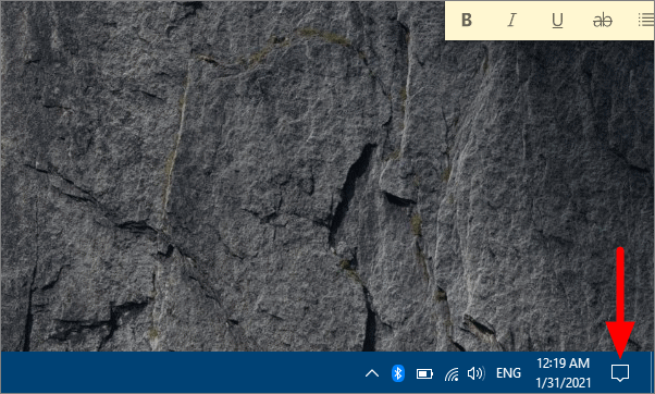 To enable Bluetooth via Action Center, click on the extreme right icon on the taskbar which resembles the message sign.