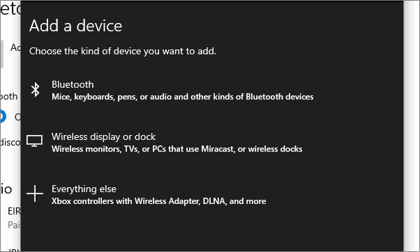The ‘Add a device’ window will open. Select the type of device you want to add. The devices falling under each kind are given. Select the appropriate option to proceed.
