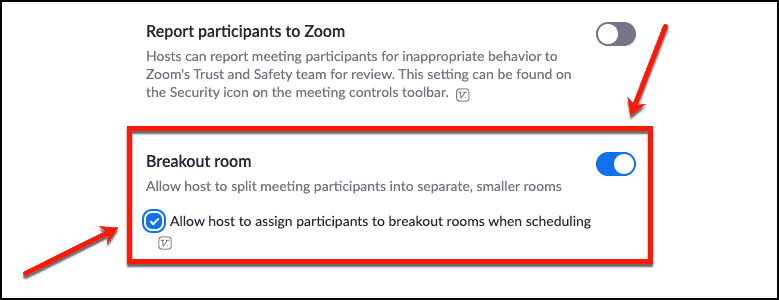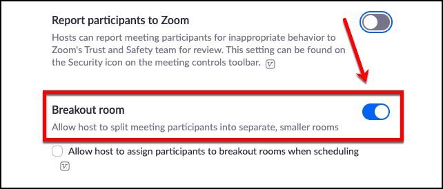 The second option under the Advanced Meeting setting would be the one we’re after. Enable the ‘Breakout Room’ option by sliding the toggle bar next to it to blue.