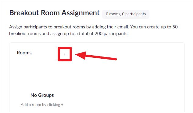 Click the ‘+’ button next to ‘Rooms’ on the pop-up dialogue box to add a Breakout Room to the scheduled meeting.