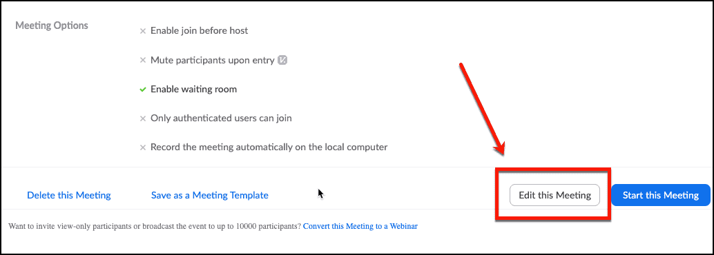Now, choose the ‘Edit this Meeting’ option at the bottom of the chosen meeting’s page.
