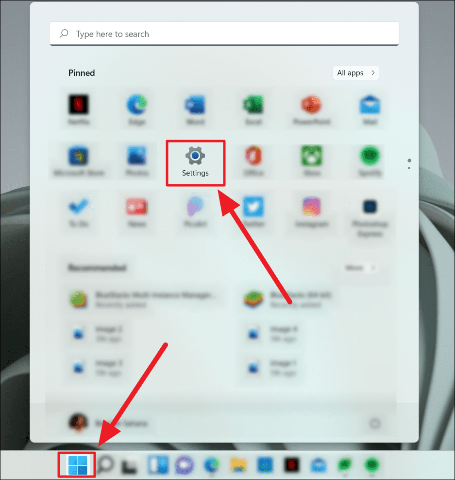 - Click the Windows button on the taskbar and select Settings from the pinned apps.