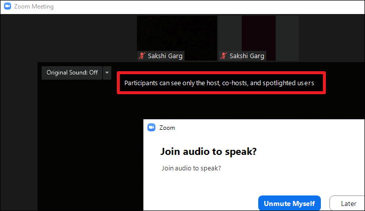 A notification banner will appear on everyone’s screen informing them that the Focus Mode is on and that videos for hosts, co-hosts, and users in the spotlight will be visible.