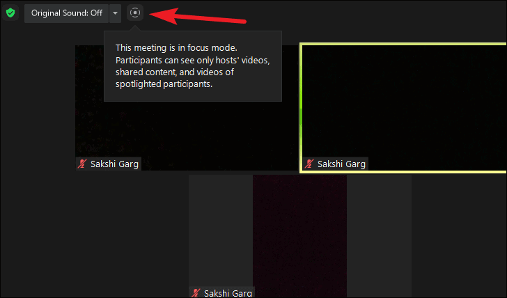 An icon for Focus Mode will also appear towards the top of the meeting screen for all participants when it is on.