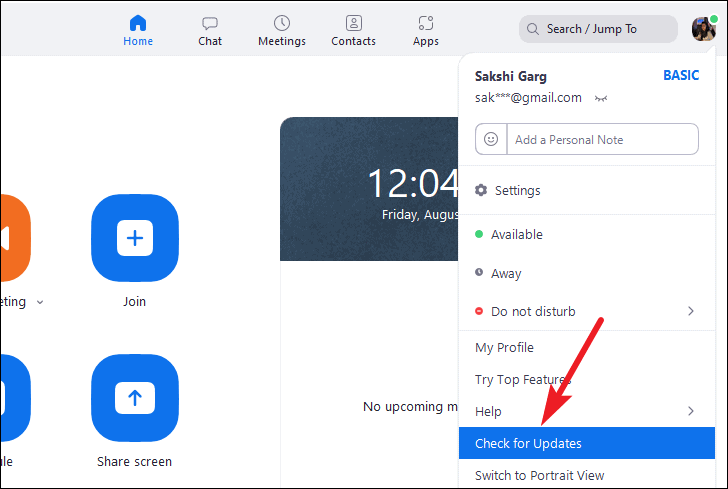 If you need to update your desktop client, go to the profile icon again and click ‘Check for Updates’ from the menu. The latest version will download and install.