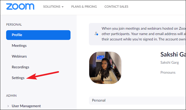 To enable Focus Mode for your account, go to zoom.us and log in with your account. Click the ‘Settings’ option from the navigation menu on the left.