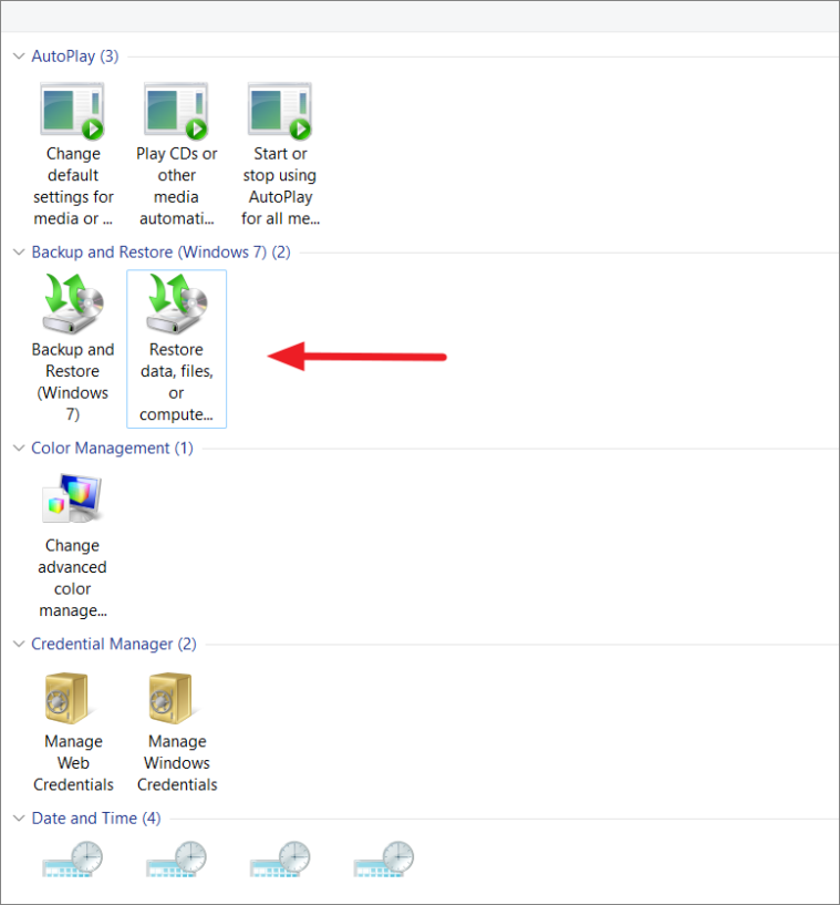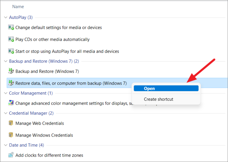 Clicking on an entry will open the corresponding settings window or Control Panel applet, allowing you to adjust configurations as needed.