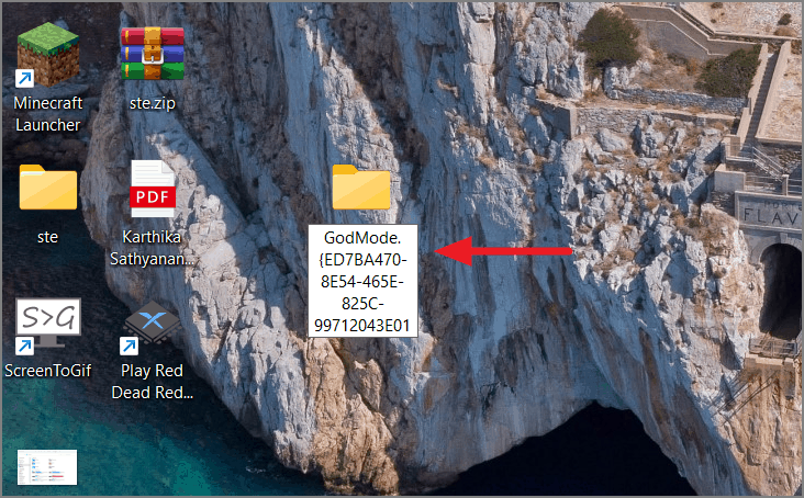 GodMode.{ED7BA470-8E54-465E-825C-99712043E01C}You can copy and paste the code directly. If you'd like a different name for the folder, replace "GodMode" with your preferred name, but ensure you keep the period and the braces intact. Altering any other part of the code may result in an error.
