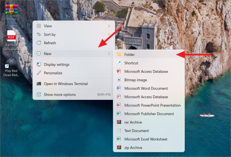Step 2: Right-click on an empty area of your desktop. From the context menu that appears, hover over the 'New' option, then select 'Folder' to create a new folder.